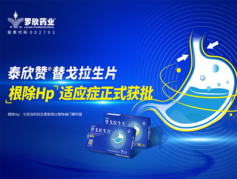 羅欣藥業(yè)創(chuàng)新藥替戈拉生片(商品名:泰欣贊?)新適應(yīng)癥“與適當(dāng)?shù)目股芈?lián)用以根除幽門螺桿菌”獲批上市